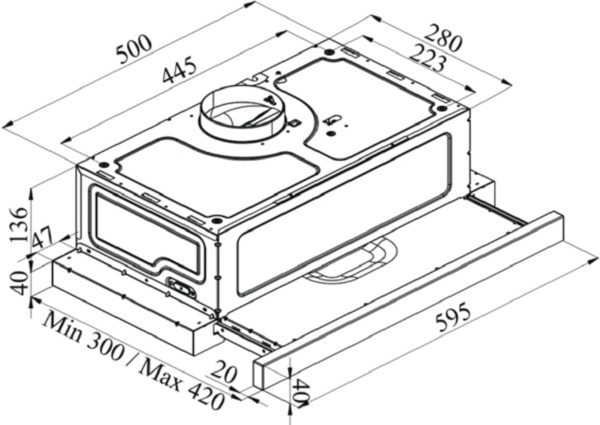 Завдяки телескопічній конструкції та вбудованому монтажу, витяжка не займає багато місця й не порушує загальний дизайн кухні. Витяжка ідеально інтегрується в кухонний гарнітур, створюючи єдиний та гармонійний інтер'єр. Чорний колір надає кухні сучасний та мінімалістичний вигляд.