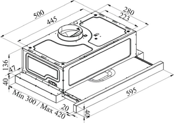 Завдяки телескопічній конструкції та вбудованому монтажу, витяжка не займає багато місця й не порушує загальний дизайн кухні. Витяжка ідеально інтегрується в кухонний гарнітур, створюючи єдиний та гармонійний інтер'єр. Сріблястий колір надає кухні сучасний та мінімалістичний вигляд.