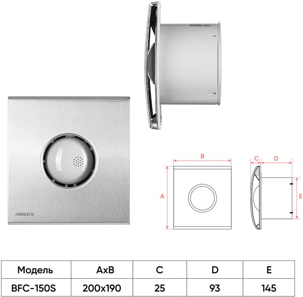 Щодо конструкції: за висоти 200 мм глибина стінок вентилятора становить 25 мм, а короба – 93 мм. Діаметр короба – 145 мм, тож діаметр отвору в поверхні має бути 150 мм – просте рішення, тож немає потреби в складних розрахунках. Ardesto BFC-150S – не просто функціональний пристрій, це вдалий елемент сучасного дизайну, який зробить простір затишнішим. Стильний, потужний та ефективний, він створений для тих, хто цінує комфорт та естетику в кожній деталі інтер’єру.