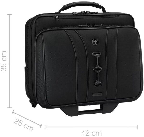 Кейс-пілот Wenger Legacy Black Edition — це сучасне рішення для тих, хто часто мандрує. Обладнана коліщатками та телескопічною ручкою, вона поєднує в собі зручність валізи та функціональність сумки для ноутбука. Завдяки продуманому внутрішньому простору ви легко запакуєте електроніку, документи та одяг для короткої поїздки.