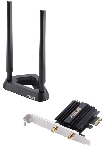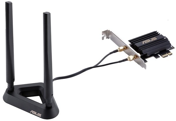 Дводіапазонний бездротовий адаптер Wi-Fi 6 (802.11ax): форм-фактор PCIe, 2 зовнішні антени, Bluetooth 5.0, стандарт шифрування WPA3, технології OFDMA і MU-MIMO
