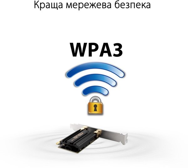 PCE-AXE59BT підтримує протокол безпеки WPA3, який додає ще один рівень захисту комп’ютера від зовнішніх атак.