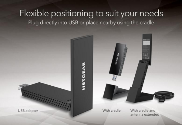 Адаптер WiFi розміщується в компактній підставці, що дозволяє гнучко розміщувати його всередині та навколо комп'ютера.