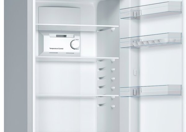 Двокамерний агрегат KGN36NL306 від Bosch з об'ємом камери в 214 л і хорошою місткістю, якісно зберігає продукти в ідеальних умовах. Енергоефективна експлуатація обумовлена класом А ++, завдяки чому електрику витрачається на 40% менше.