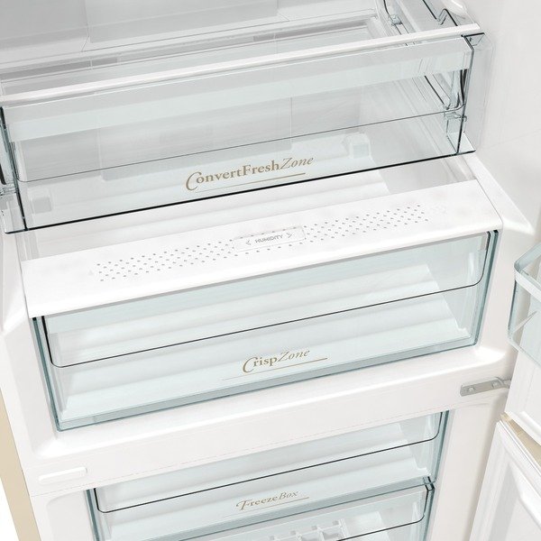 Інноваційний глянсове гладке покриття всередині відділень забезпечує легку чистку холодильників з морозильними камерами Gorenje GardenFresh, щоб їжа зберігала поживні властивості і не псувалася.