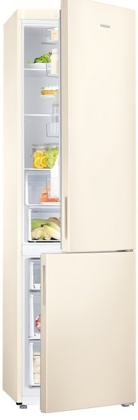 Выбор был между несколькими производителями. Но окончательно выбрал данную модель холодильника. Цвет бежевый, вписался в кухню под интерьер. Большие габариты снаружи и из внутри. Холодильник очень вместительный и не возникало проблем,что что то не войдет. Имеется 2 ящика свежести, в котором храним овощи с фруктами, в другом мясо и рыбу. Полки расположены очень продуманно можно поставить что то высокое. Влезает большое количество продуктов и прочее.