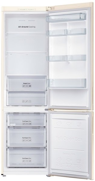 Для тривалого збереження свіжості їжі модель RB 37J5000 EF/UA використовує систему всебічного охолодження. Холод усередині камер (як холодильної, так і морозильної) поширюється через спеціальні отвори, розташовані поряд з кожною полицею. Цей алгоритм забезпечує можливість підтримки стабільного температурного режиму.
