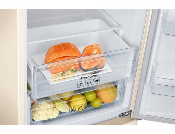 У конструкції Samsung RB 37J5000 EF/UA передбачено простір з мікрокліматом, адаптованим під зберігання напівфабрикатів, а також сирих м'ясних заготовок і рибних продуктів, які швидко псуються. Йдеться про ящик Fresh Zone з підтримкою особливих температурних стандартів.