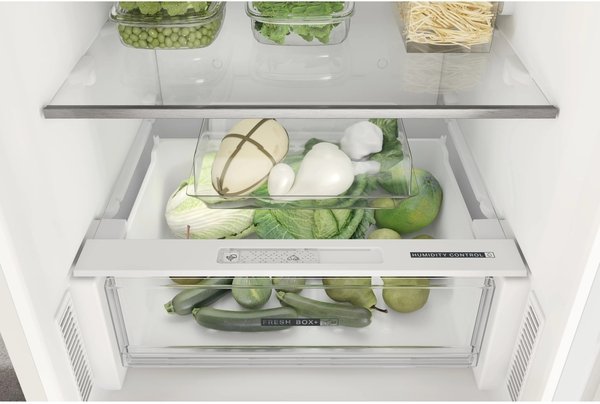 Дві шухляди з вбудованим регулятором вологості дозволяє зберігати фрукти і овочі свіжими до 15 днів. На основі зміни зовнішнього вигляду і візуальної оцінки якості в порівнянні зі звичайними фруктами і овочами. Результат внутрішнього тестування.