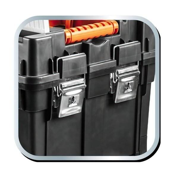 Купил здесь, по акции за 912 грн. Ящик для работы не годится, но для хранения на дому подходит. Защелки верхних органайзеров отломаются по-любому. Ручки неудобные, та которая для носки наполовину скругленная, а на половину обрезок, давит на ладонь, человек который 25 кг в этом ящике поднимал по этажам его точно не носил. Ручка тележки с непонятными прорезями, тоже давят на руку, но это просто не удобно. Нижний ящик, вернее его полезный объем имеет не кубическую форму, по нему проходит ось колес и ребра жёсткости, даже чемоданчик от дремеля не влез. Как по мне для колёсного ящика он низковат. Замок, вернее замки на него вешать безсмысленно. А насчёт прочного пластика тут да - пластик толстый не проминается. Органайзер из съёмных ящичков впринципе удобен, держатся они плотно, но это совсем не выдвижная полочка как у Стенли. И самое плохое что нет никаких держателей чтобы закрепить матовый уровень или бур, как у того же Стенли. Вывод такой - сумка от Метабо лучше всех ящиков, а этот будет стоять дома как хранилище инструмента.