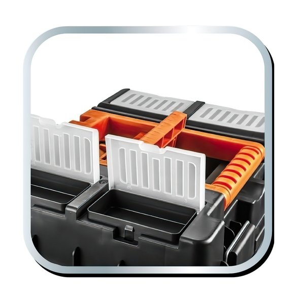 Ящик для інструментів з колесами NEO (арт. 84-115) розміром 40 x 40 x 70.5 см. Містка пересувна інструментальна ящик з колесами виготовлена з міцної пластмаси з металевими замками. Оснащений колесами для зручного пересування. Інструментальний ящик складається із 3 функціональних модулів. Скринька має повністю розбірну конструкцію. Верхній модуль – це ящик для інструменту, середній модуль складається з чотирьох ергономічних контейнерів, а нижній модуль є містким ящиком для великого інструменту. Крім того, інструментальний ящик з колесами оснащений 4 органайзерами для зберігання дрібних елементів, ложементом та двома зручними ручками для перенесення чи катання. Бренд NEO виправдовує очікування професіоналів.