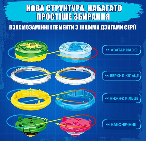 Створіть свій власний унікальний Nado, елементи дзиґи взаємозамінні з іншими елементами дзиґ серії Starter Pack.