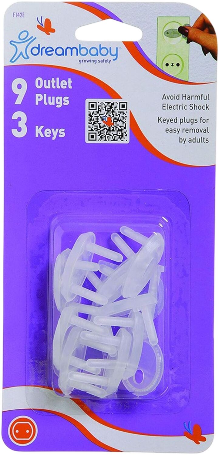 Захист розетки DreamBaby не дає дітям встромляти речі в розетку, знижує ризик травмування та ураження електричним струмом. У комплекті 9 заглушок і 3 ключі.