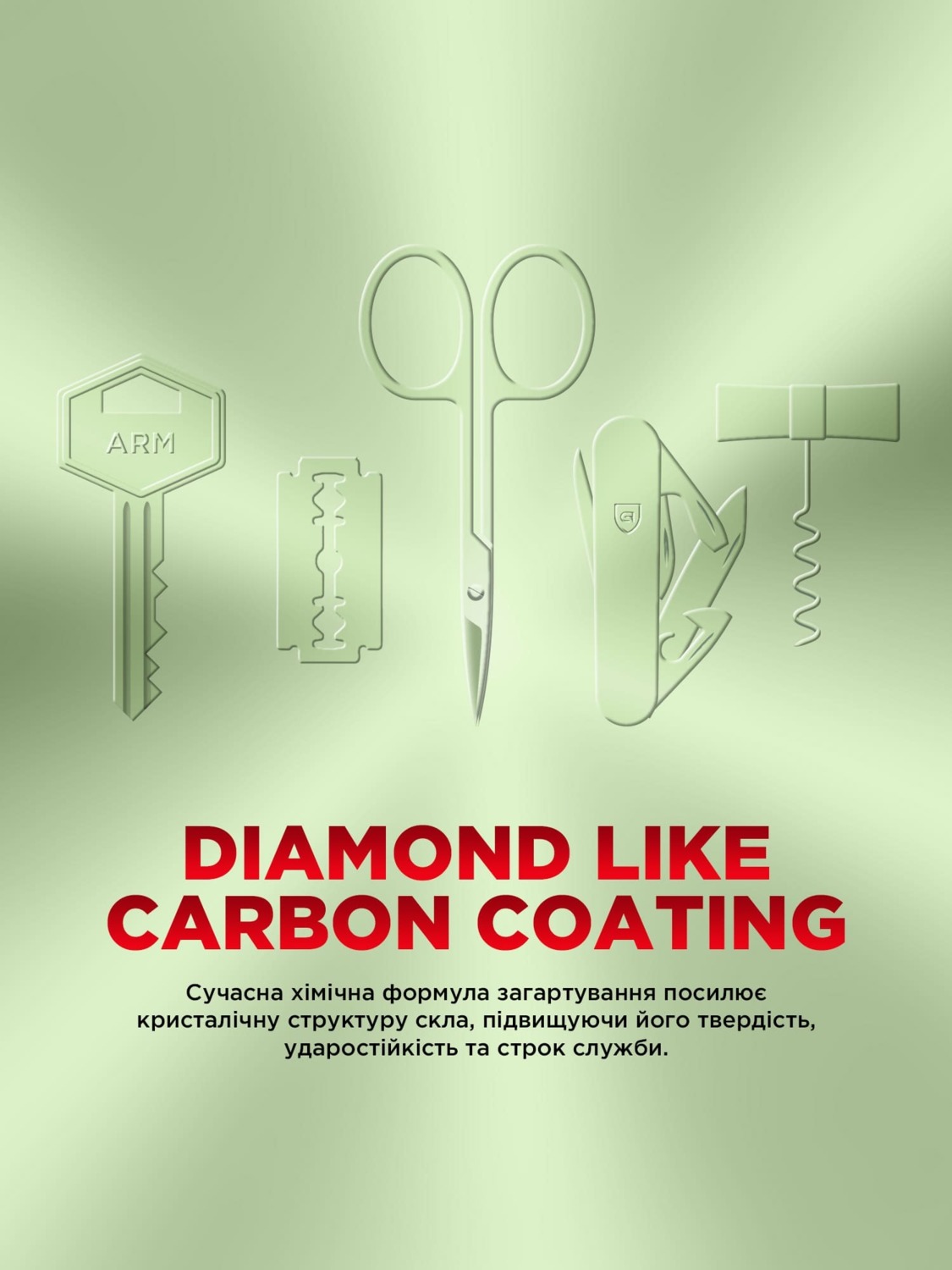 Алмазоподібне вуглецеве покриття створює підвищену стійкість, яка відчувається у дрібницях: навіть після зустрічей із ключами чи металевими предметами поверхня залишається рівною. Там, де стандартні моделі починають тьмяніти по краях, це скло зберігає чисту оптику та гладку фактуру — день за днем, без приводу замислюватися про заміну.
