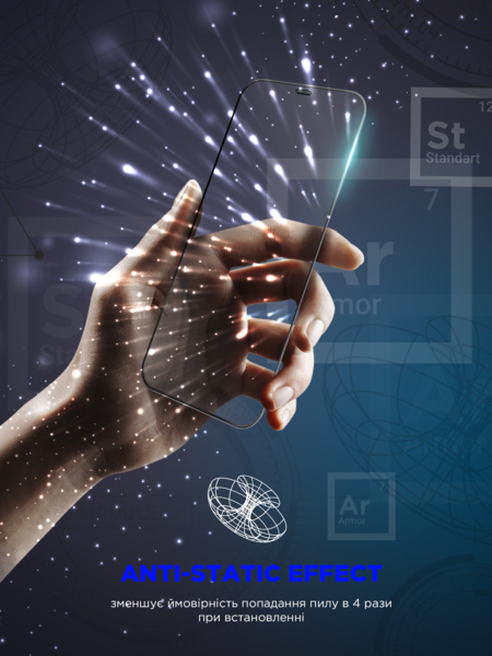 Скло оснащене клейовою основою Premium AB Glue, що забезпечує легке встановлення без утворення бульбашок, а також багаторазове переклеювання за необхідності. Функція Anti-dust зменшує ризик потрапляння пилу під час встановлення скла.