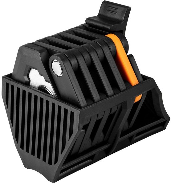 Велосипедний замок, складаний ключ 91-006 NEO - це пристрій безпеки велосипеда, якому можна довіряти. При загальній довжині 78 см замок виготовлений з міцних і надійних плоских прутів. Їх важко зламати і розрізати, що гарантує надійний захист вашого транспортного засобу.
