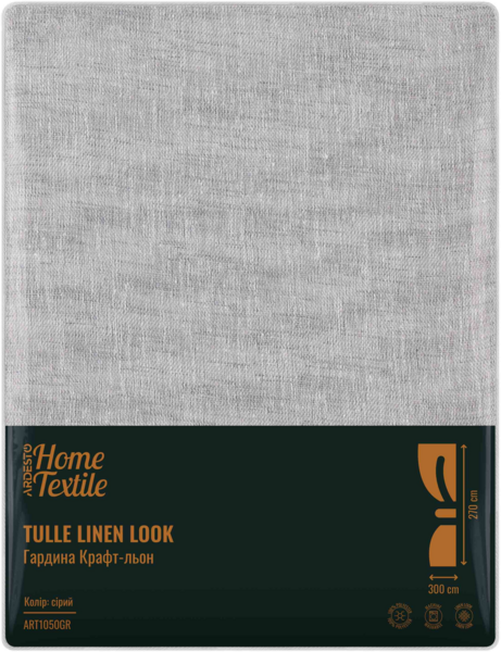 - Фіранка ARDESTO 300х270см, крафт-льон, 100% поліестер, сірий (ART1050GR)