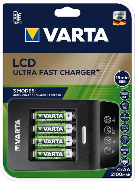 Зарядний пристрій VARTA LCD Ultra Fast Plus Charger + Акумулятор NI-MH AA 2100 мАг, 4 шт. (57685101441)