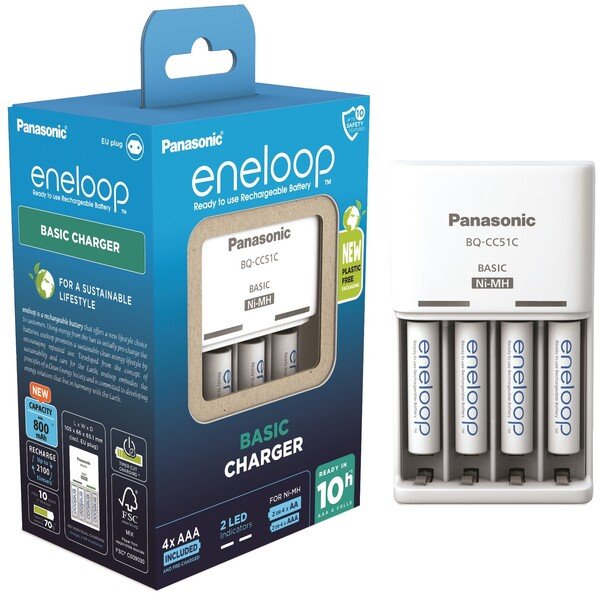 Зарядний пристрій Basic Charger + Акумулятор Eneloop NI-MH AAA 800 мАг, 4 шт. (K-KJ51MCD04E)