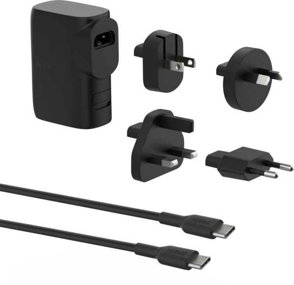 Зарядний пристрій готовий до подорожей зі змінними типами штепселів, необхідними для міжнародних подорожей.