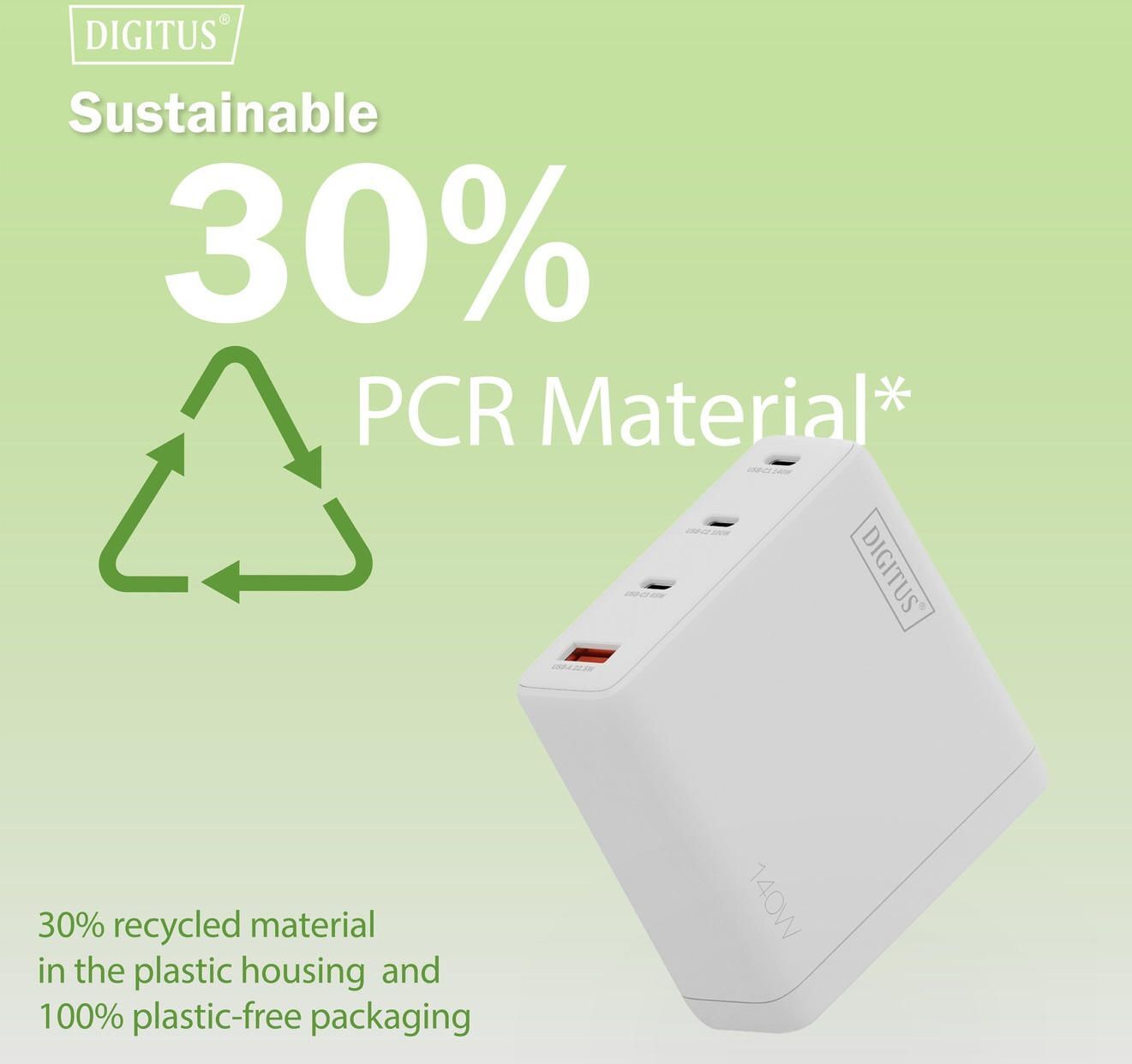 Зарядний пристрій DIGITUS GaN 3хUSB-C 1хUSB-A 140W (DA-10305)