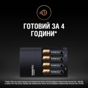 Зарядний пристрій Duracell Hi-Speed готовий за 4 години (приблизно 90% від повної зарядки при використанні нікель-металогідрідних Duracell AA 1300 МА та приблизно 80% від повної зарядки при використанні нікель-металогідрідних Duracell AAА 750 МА ). Зарядний пристрій Duracell Hi-Speed – це просте, безпечне і надійне рішення, щоб ви ніколи не пропустили жодної важливої події у своєму житті. Зарядний пристрій Duracell Hi- Speed має індикатор часткової зарядки та автоматичне відключення, щоб запобігти перегріву, коли акумулятори повністю заряджені. Почніть нову пригоду з повною потужністю, високою продуктивністю та хорошою ціною - іншими словами, насолоджуйтеся ідеальним балансом.