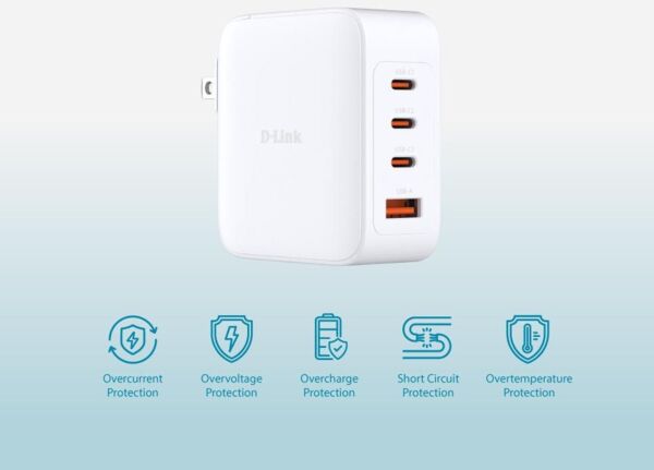 - Зарядний пристрій D-Link 140W GaN 3хUSB-С, 1xUSB-A, White (DCF-141)