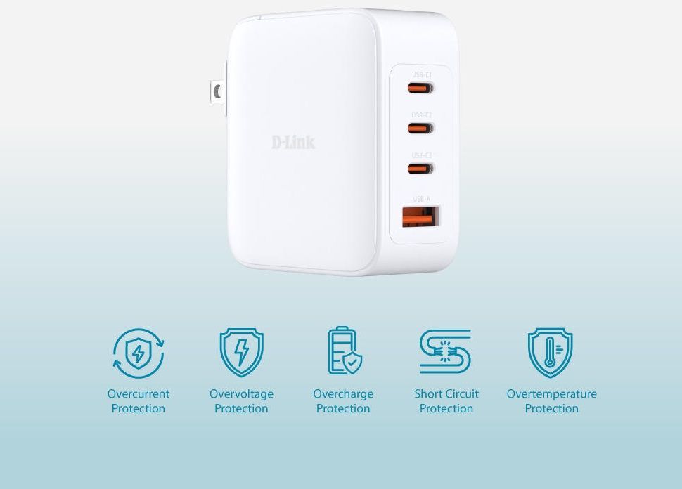 Оптимізуйте свій домашній робочий простір за допомогою D-Link DCF-141. Цей потужний GaN зарядний пристрій потужністю 140 Вт заряджає ноутбук, планшет, мобільний телефон та інші пристрої одночасно на повній швидкості. Компактний і ефективний, він допоможе вам залишатися зосередженим і повністю зарядженим протягом усього дня, без безлічі адаптерів.