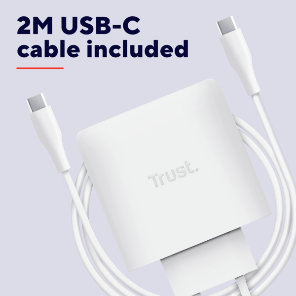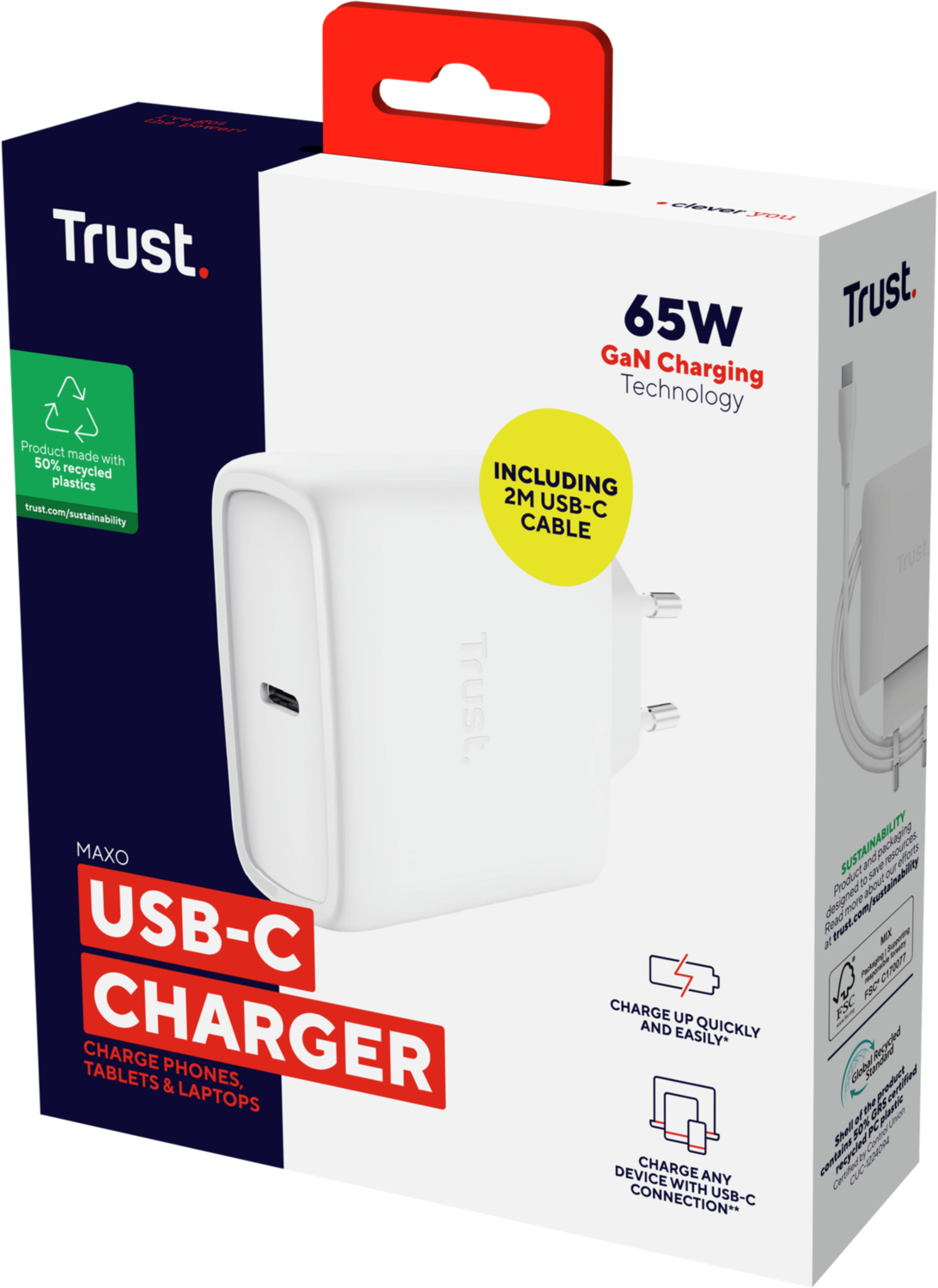 - Мережевий зарядний пристрій Trust Maxo 65W GaN USB-C PD/PPS White (25524_TRUST)
