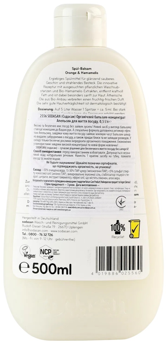 - Засіб для миття посуду Sodasan Бальзам Апельсин 500 мл