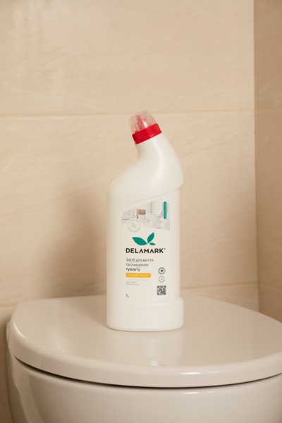 DeLaMark засіб для миття туалету - має високий вміст діючих речовин та розроблений технологами міжнародного рівня, щоб поверхня унітазу сяяла за мінімальних зусиль та без шкоди для людей і довкілля. Концентрований засіб дуже економний та має зручну упаковку з дозатором. Вся сировина для виробництва засобу проходить суворий контроль. Активно направлено на: очищення від нальоту та іржі, дезинфекцію.