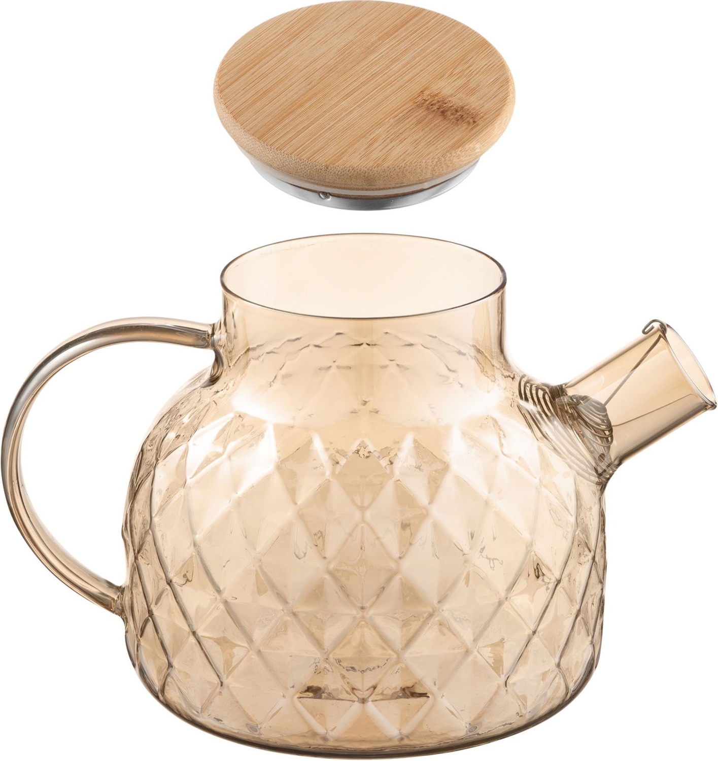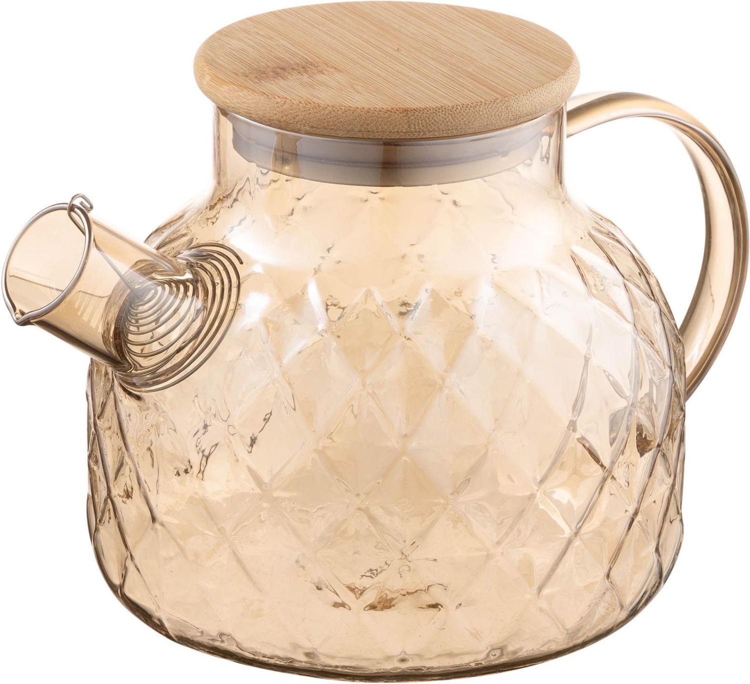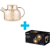 Заварник виготовлено з екологічного матеріалу – боросилікатного скла, яке не вбирає запахів, тому смак напою завжди залишатиметься незмінним. Матеріал вирізняється міцністю та стійкістю до перепадів температури, тож тривалий термін слугування і безпечне використання виробу гарантовано. Бамбукова кришка та золотистий відтінок скла додають виробу ноток розкоші. Об’єм моделі становить 1 л. Це оптимальний вибір для сімейних обідів, вечірок з друзями або для використання в офісі. Заварник згодиться для різних видів плит (газових, електричних, склокерамічних, галогенних), його можна підігрівати на помірному вогні та мити в посудомийній машині (крім бамбукової кришки).