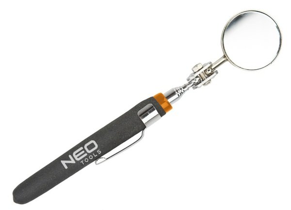 Инспекционное зеркало Нео очень полезно в мастерской при весьма скрупулезной работе. Весьма хорошая рукоятка, благодаря которой можно надежно держать его в руке. Также само зеркало защищено крепкий корпусом, он защищает при падениях от трещин и разных нежелательных последствий. Брал себе на работу по совету коллеги, заказывал в этом магазине. Стекло телескопическое, приближает желаемые объекты, передавая в точности все. Можно его регулировать в разные стороны, но это делается непосредственно во время эксплуатации, очень просто и быстро, вообще оно очень универсальное и по смешной цене.