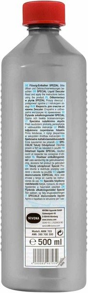 Nivona NIRK 703 - це рідина, призначена для видалення накипу в кавомашинах та інших пристроях, що працюють із гарячою водою. Рідина Nivona NIRK 703 розроблена, щоб ефективно і безпечно видаляти накип, який може накопичуватися всередині кавомашини через вміст мінералів у воді. Для використання Nivona NIRK 703 зазвичай дотримуються інструкцій виробника. Зазвичай процедура включає змішування певної кількості рідини з водою і пропускання цієї суміші через систему кавомашини. Рідина Nivona NIRK 703 розчиняє і видаляє накип, відновлюючи ефективність і продовжуючи термін служби пристрою. Важливо пам'ятати, що під час використання будь-якої хімічної рідини для видалення накипу необхідно уважно дотримуватися інструкцій виробника і вживати запобіжних заходів, зазначених на упаковці продукту. Якщо у вас виникнуть питання або сумніви щодо використання Nivona NIRK 703, рекомендується звернутися до виробника або фахівців у сфері обслуговування кавоварок для отримання додаткової інформації та рекомендацій.