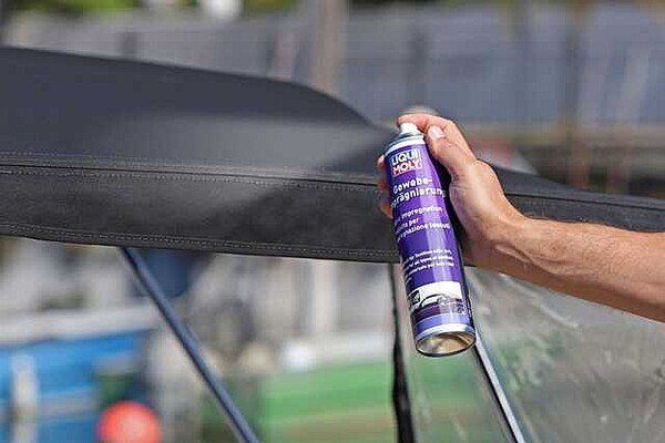Універсальний засіб для тканинних дахів кабріолетів, рюкзаків, навісів, наметів, спортивного одягу, сонцезахисних тентів. Також може використовуватися для продуктів із кліматичною мембраною та шліфованою шкірою. Вони залишаються м'якими та повітропроникними. Захист від утворення плям.