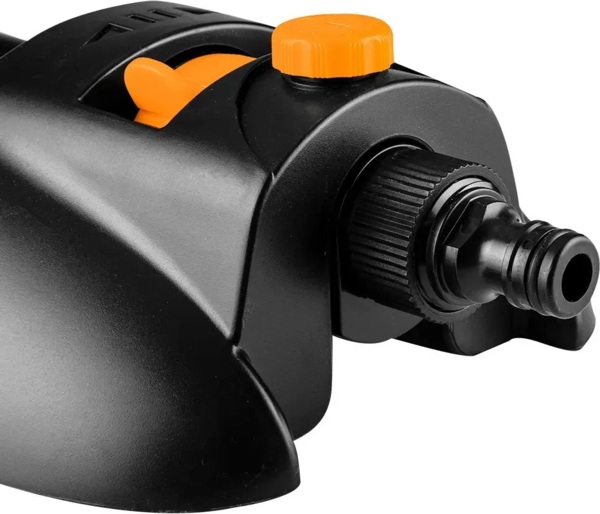 Максимальна площа розпилення - до 14x19 м, що робить модель зручною для системного поливу без постійного переставляння зрошувача.