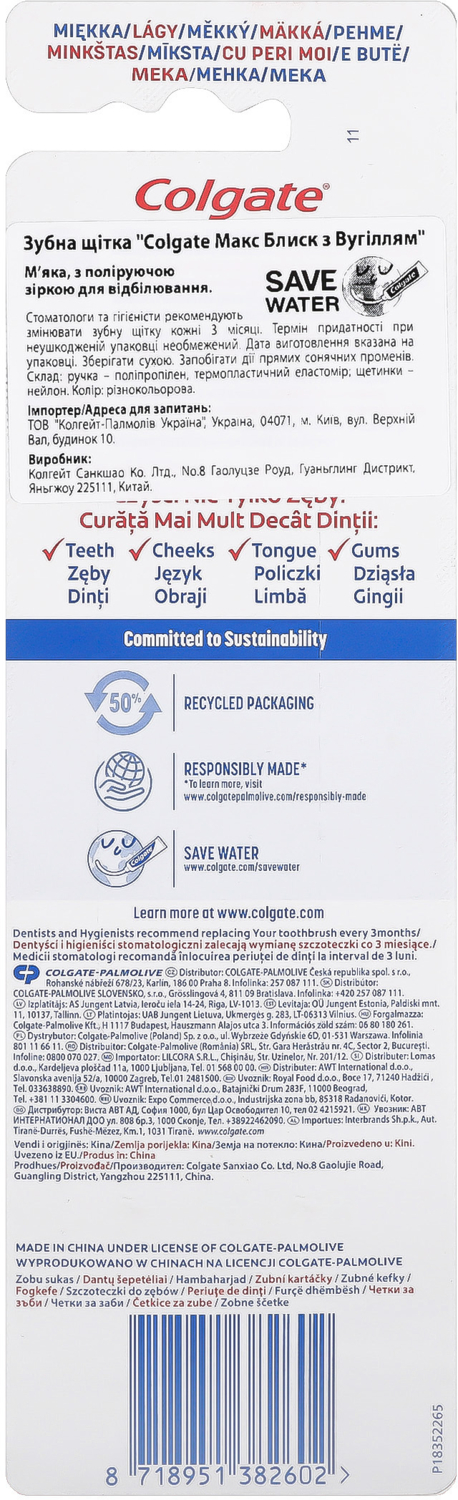 - Зубна щітка Colgate Max Shine з деревним вугіллям 1+1