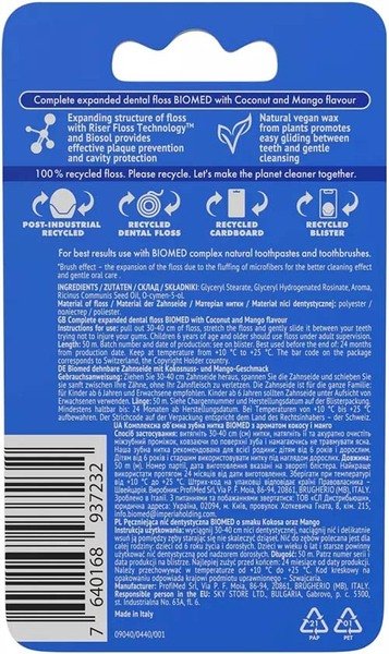 Схожі товари Зубна нитка Biomed Кокос та манго 50м