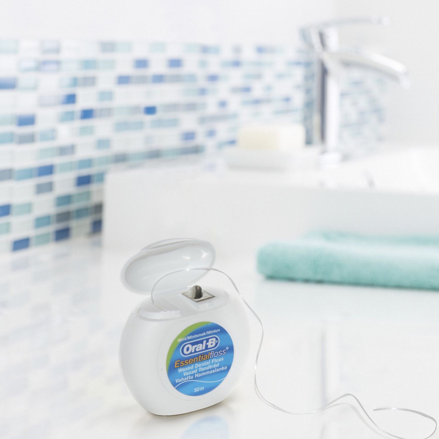 Oral-B Essential Floss ідеальна для людей, які тільки починають регулярно використовувати зубну нитку — вощеного пристосування допомагає зубах швидко звикнути до очисної процедури.