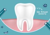 - Зміцнює зубну емаль завдяки вмісту фтору (1450 ppm).