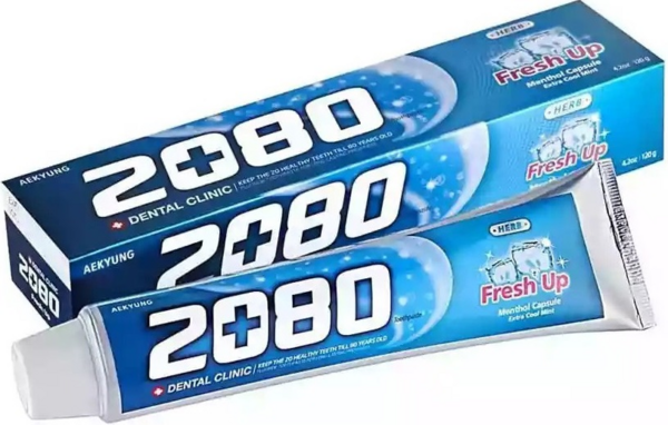 Освіжаюча зубна паста Dental Clinic 2080 Fresh Up Toothpaste прекрасно очищає і захищає від карієсу, усуває неприємний запах з рота і має відбілюючий ефект, запобігає появі пародонтозу. Паста має кремову консистенцію з дрібним вкрапленням капсул ментолу. До складу входять пасти вітамін Е, екстракти ромашки і шавлії мають протизапальну і лікувальну дію, усувають всілякі мікроби, а також прискорюють загоєння ранок. Цілюще впливають на ясна. Завдяки монофторфосфату натрію і кремнієвій кислоті, які також містяться в засобі, підвищується стійкість емалі до роз'їдаючої дії кислот, тим самим захищаючи зуби від карієсу, забезпечує щадне полірування, не стираючи і не порушуючи структуру емалі.