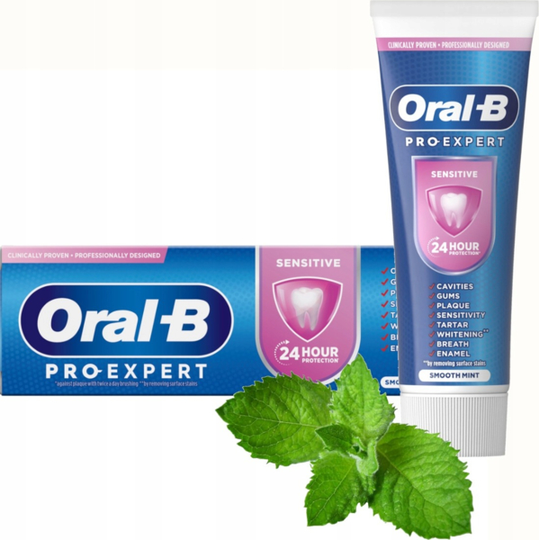 - Зубна паста Oral-B Pro-Expert Sensitive допомагає захистити зуби від чутливості та забезпечує 24-годинний захист від зубного нальоту при чищенні двічі на день.