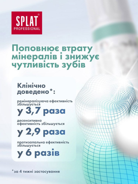 Ефективна зміцнююча зубна паста заповнює втрату мінералів та знижує підвищену чутливість зубів. Гідроксіапатит – основна будівельна речовина емалі, діє ідентично «пломбі», запечатуючи мікротріщини на поверхні емалі, зміцнюючи її та знижуючи підвищену чутливість зубів.