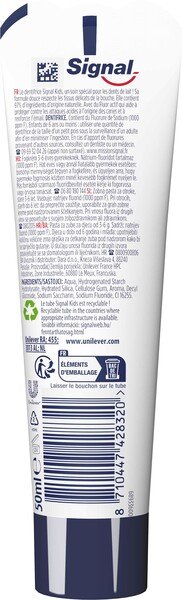 Безпечне і до того ж приємне на смак чистка зубів - з пастою Signal для дітей. Формула засобу розроблена для ефективного видалення нальоту та залишків їжі, а також дбайливого догляду за молочними зубами. Продукт можна використовувати для дітей з 3 до 6 років.