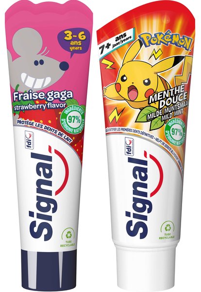 Паста Signal містить безпечну для дітей концентрацію фтору та підходить для щоденної гігієни порожнини рота.