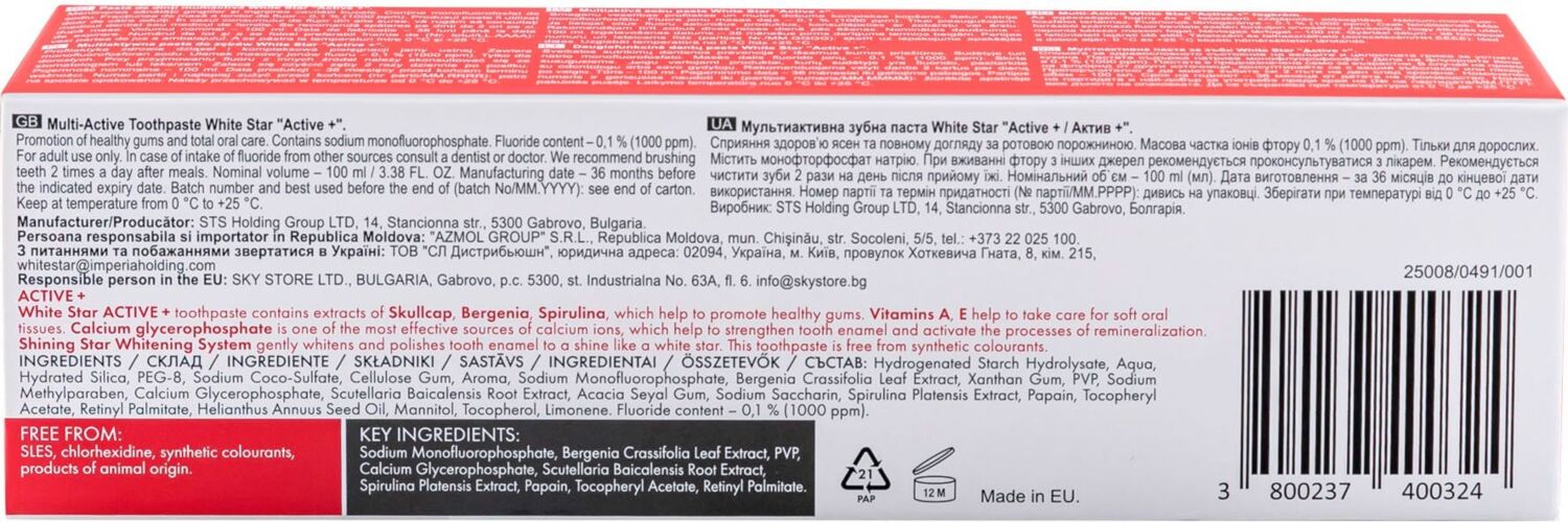 - Зубна паста White Star Multi-Active Active+ 100ml