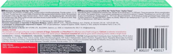 - Аромат і смак: White Star Herbal Power має приємний трав'яний аромат з легкими нотками ромашки, шавлії та глоду. Паста залишає тривале відчуття свіжості та чистоти після кожного використання.