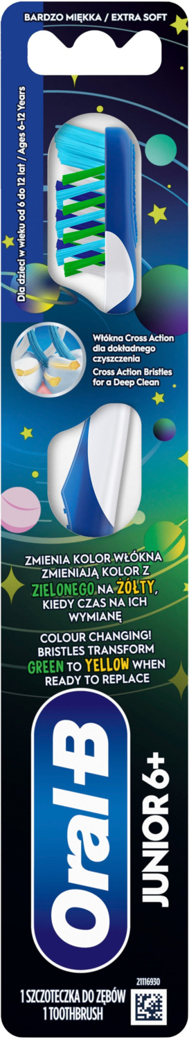 Мануальна зубна щітка Oral-B Junior з призначена спеціально для дітей від 6 до 12 років. Перехресні щетинки Cross Action ефективно усувають зубний наліт.