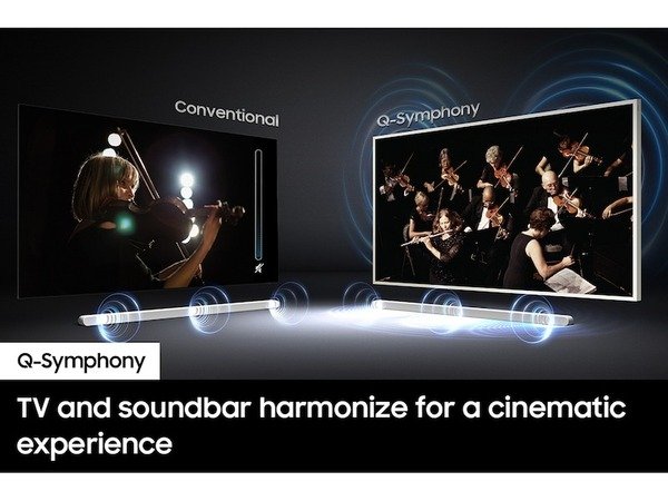 Покращуйте свої звукові враження за допомогою саундбара, який автоматично аналізує кімнату та калібрує тони верхнього діапазону, щоб найкраще заповнити простір, використовуючи телевізор Samsung TV.