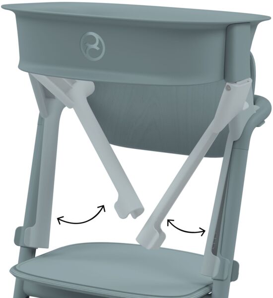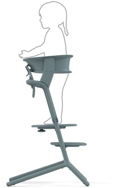 - Оригинальная конструкция переносит вес на нижнюю часть стула Lemo, обеспечивая стабильность. Выше защитное кольцо поддерживает спину ребенка.